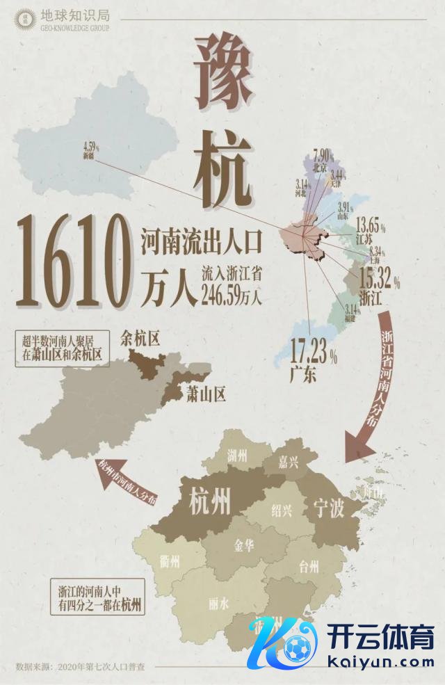 一个直不雅进展是,在杭的河南东说念主数目盛大。第七次东说念主口普查数据涌现,河南东说念主最心爱去广东,其次是浙江,而浙江省内河南东说念主最多的地苟简是杭州。